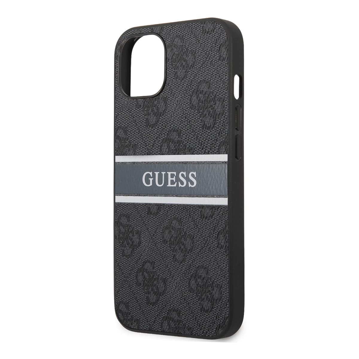 Чехол-накладка изготовлен из искусственной кожи с монограммой бренда, нанесенной на пластиковую основу. Эти материалы отлично защищают гаджет от повреждений, неизбежных в процессе ежедневной эксплуатации, а силиконовый бампер обеспечивает комортное извлечение девайса. Специальное защитное кольцо оберегает объектив от механических дефектов. Отверстия идеально совпадают с разъемами, а боковые клавиши оснащены заглушками, интегрированными в чехол - это защищает их от попадания грязи, пыли и воды. Кейс так же не препятствует беспроводной зарядке и сигналам NFC. Внешняя сторона декорирована принтом с логотипом бренда.